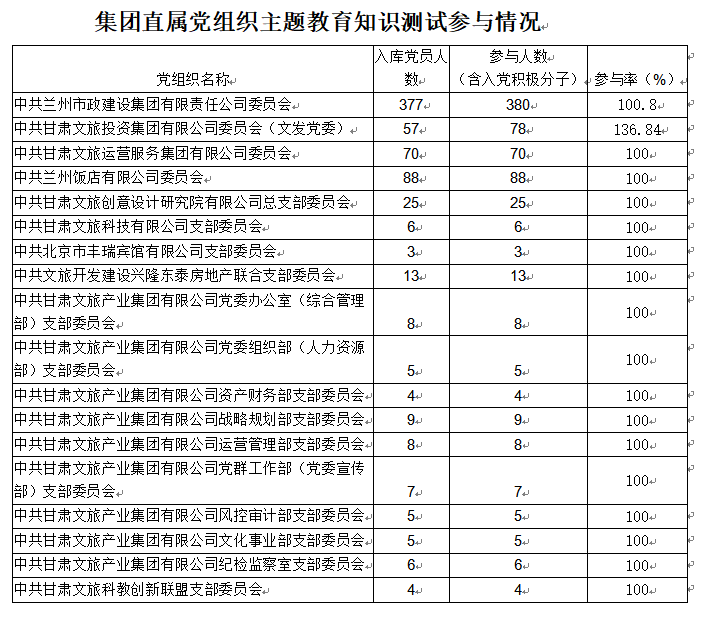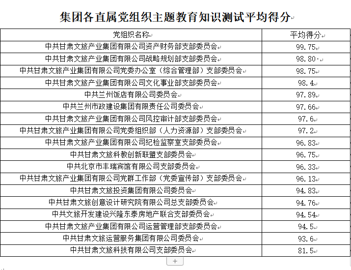 为进一步检验学习成效,推进主题教育走深走实。集团主题教育领导小组办公室于5月29日—6月2日20时组织集团全体党员开展主题教育线上知识测试,现将知识测试情况通报如下: